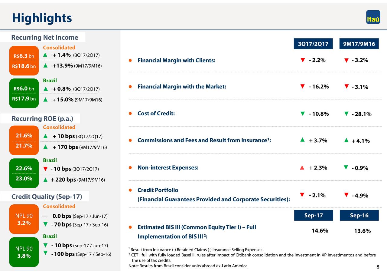 - Itau Unibanco Holding S.a. 2017 Q2 - Results - Earnings ... - Itau Unibanco S A (Head Office) In Sao Paulo.