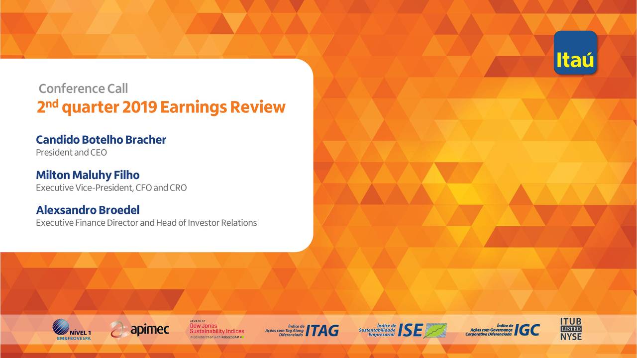 - Itaú Unibanco Holding S.a. 2019 Q2 - Results - Earnings ... , Itau Unibanco S/A Swift Code, Sao Paulo.