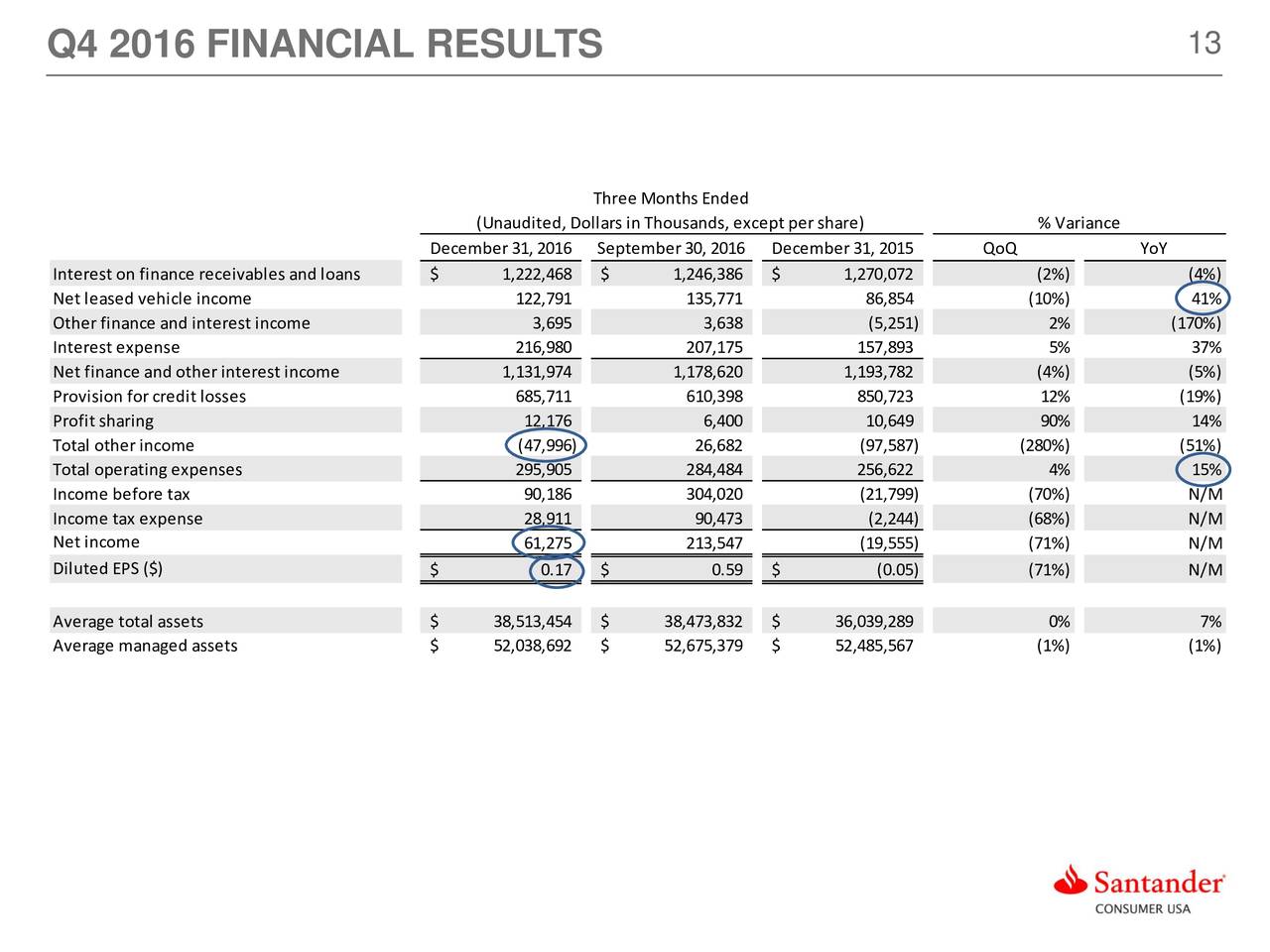 - Santander Consumer Usa Holdings Inc 2016 Q4 - Results ... : Santander Consumer Usa 5201 Rufe Snow Dr Santander Consumer Usa Inc.