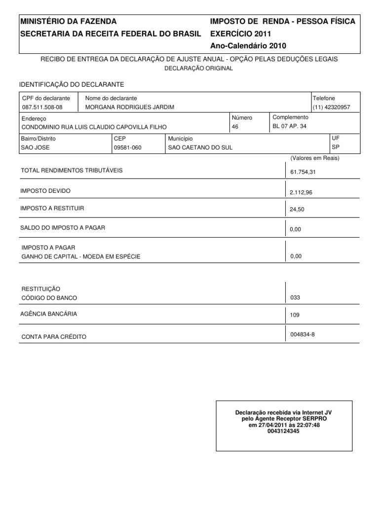 - Pgd Irpf 2011 Principais Novidades , Página Inicial Órgãos Secretaria Especial Da Receita Federal Do Brasil.