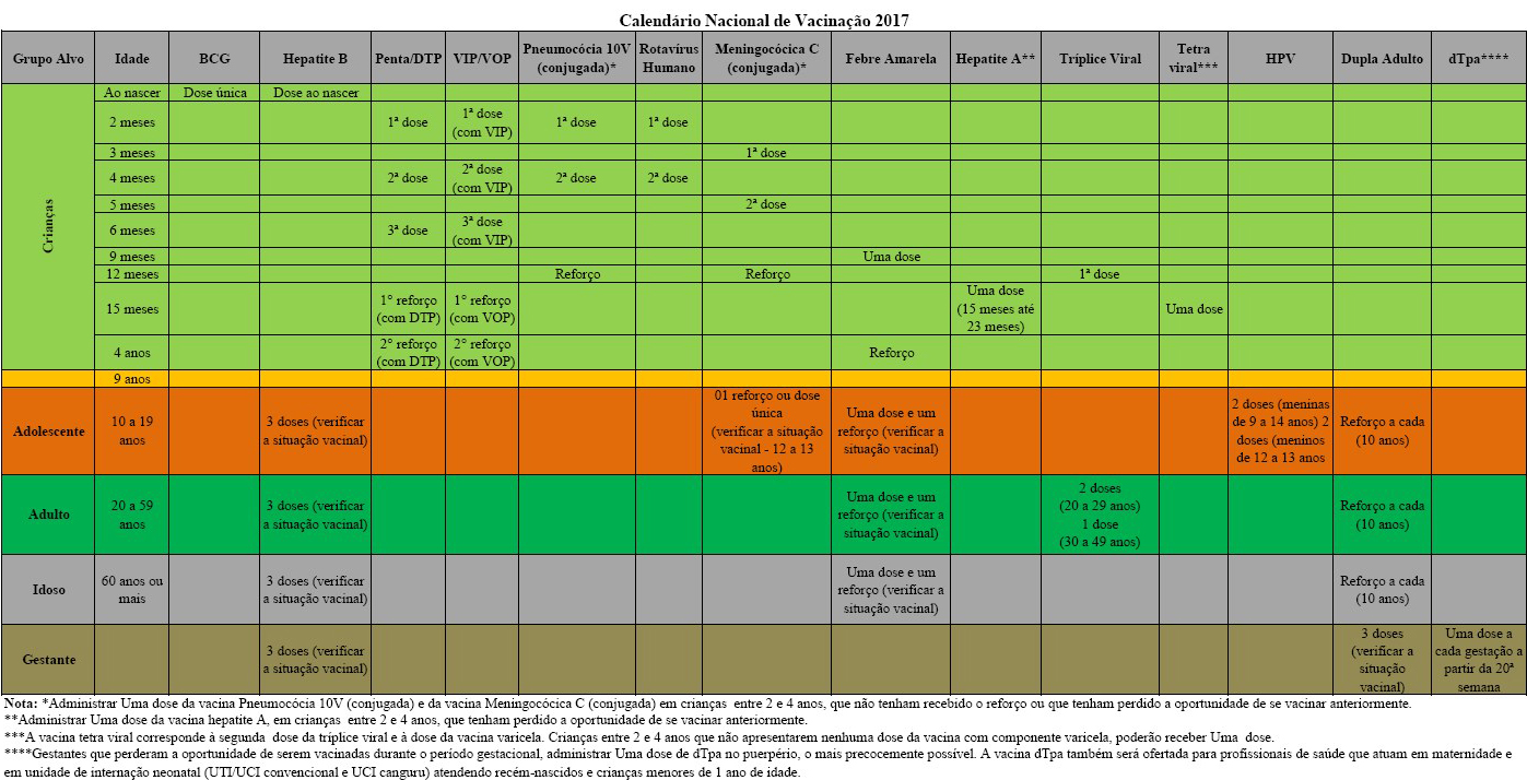 - Calendário Nacional De Vacinação - 2017 . Calendário De Vacinação Do Adolescente.